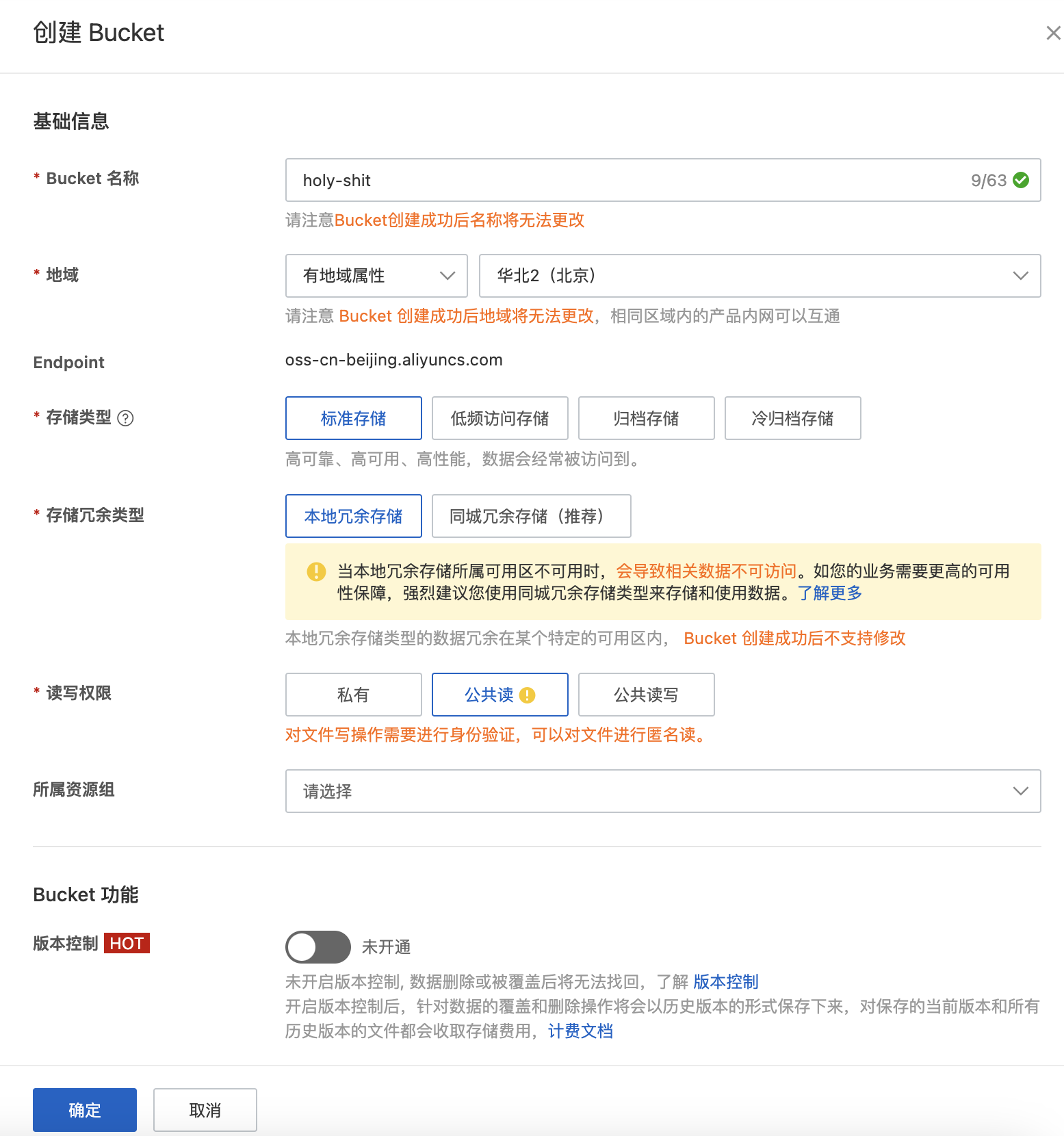 地域你根据自己的情况来,不同的地域的Endpoint(即地域节点)不一样,这个Endpoint在后面有用到。然后读写权限搞成公共读,毕竟资源都是公开访问的。其他的配置项按照默认的来就行,如果你懂点就按照自己的需求来。请忽略我填写的Bucket名。